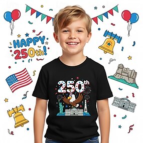 4 juillet 2026 250e Jour du Souvenir T-shirt à manches courtes imprimé en 3D drapeau américain patriote vétéran col rond pour homme