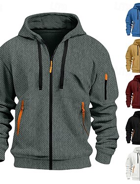Homme Sweat à capuche Sweat à capuche zippé intégral Sweat à capuche en polaire Rouge Kaki Gris foncé Beige Café À capuche Uni Cordon de serrage Sport & Loisir Quotidien Fête Polyester Streetwear