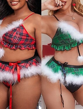 ensemble nuisette lingerie lingerie de noël grande taille avec string femme sexy coquin motif à carreaux fantaisie vêtements de nuit adultes noël nouvel an fête de noël
