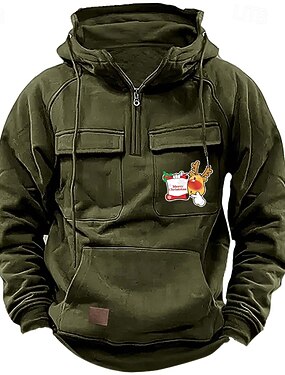 Homme Sweat à capuche Sweat à capuche quart zippé Noir Rose Claire Vin Bleu Vert À capuche Chaque Cordon de serrage Avec Poches Sport & Loisir Quotidien Fête Noël Streetwear Occasionnel Printemps