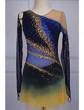 Robe de patinage artistique Fille Patinage Robe Noir bleu. Patchwork Dos Nu Élastique Entraînement Compétition Tenue de Patinage Classique cristal pailleté manche longue Patinage sur glace Patinage
