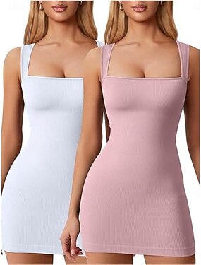 Femmes Mini Robe Robe Décontractée Moulant Robe Nuisette Mode Chaud Moderne Extérieur Soirée Week-end Coupe régulière Uni Sans manches Col carré Rose vif Noir Blanche Rose Claire Été Printemps