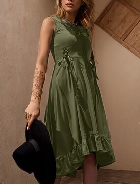 Punk & Gothique Renaissance Steampunk Robe Sorcière Fille gothique Couleur Unie Déguisement Femmes Fantaisie Steampunk Nuit de Walpurgis Halloween Carnaval Mascarade Décontracté Quotidien Adulte Robe
