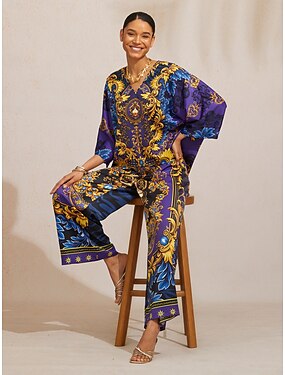 ensemble de pyjama de détente pour femmes 2 pièces tie dye décontracté confort maison polyester confort col rond manches longues pull short printemps automne tenues pour la maison