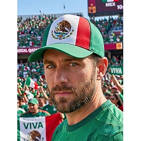 Casquette de baseball homme en polyester aux couleurs du drapeau mexicain, taille ajustable, idéale pour les supporters de football, les matchs, les événements sportifs et les activités de plein air au quotidien.
