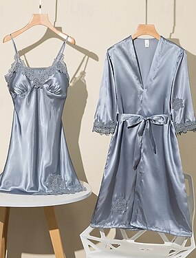 Femmes Loungewear Robe Chemise de Nuit Mode Occasionnel Doux Couleur Unie Patchwork Robes Maison Vacances manche longue Col en V Noir Champagne Rose Claire Vin Bleu de minuit Été Printemps Automne