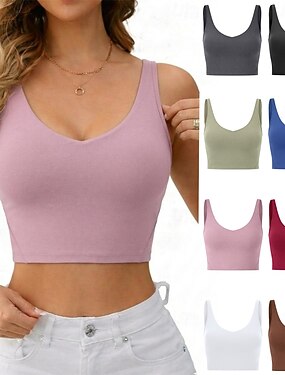 Femmes Débardeur Tee-shirt de Baignade Couleur Unie ancien Élégant Occasionnel Sans manches Bretelles Fines Hauts courts Salle de sport Sports Tenue de plage Noir Blanche Fuchsia Vert Rose Ét