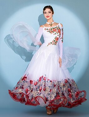 Ligne A Longueur au sol Robes de Bal Élégant ancien Fête manche longue Épaules Dénudées Soirée Fête de jardin Nylon avec Imprimé floral
