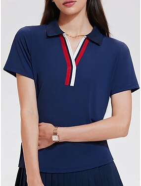 Femmes Couleur Unie T-shirt athlétique T-shirt de tennis Polos de tennis Débardeurs Manche Courte Séchage Rapide Mince Respirant Tennis Pickleball Course Col Polo T-shirt bleu marine Vêtements de