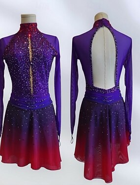 Robe de patinage artistique Femmes Patinage Robe Violet Patchwork Dos Nu Haute Élasticité Entraînement Compétition Tenue de Patinage Classique cristal pailleté Sans manches Patinage sur glace
