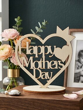 Couronne en bois en forme de cœur, objet décoratif pour la fête des mères, design moderne et épuré, idéal pour les célébrations, cadeau parfait et décoration de table pour les fêtes.
