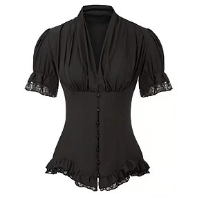 Rococo Victorienne Médiéval Blouse / Chemise Corset Viking Marie-Antoinette Elfe Dentelle Déguisement Femmes Pirate Royal Steampunk Halloween Carnaval Mascarade Performance Adulte Chemisier