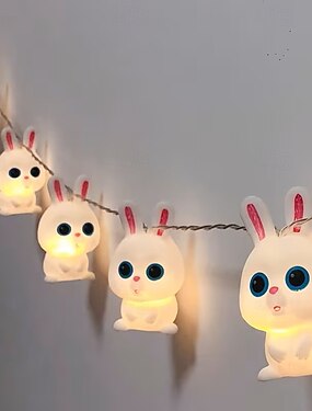 Guirlande lumineuse de 2 m à 10 LED en forme de lapin mignon, fonctionnant sur piles, idéale pour Pâques. Décoration féérique pour la chambre, le salon, la salle à manger ou une fête de Pâques.