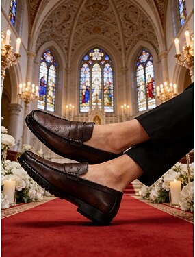 Mocassins décontractés pour hommes en cuir marron, finition lisse et confort optimal, style élégant et formel pour les mariages, les offices religieux et les réceptions officielles.