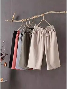 Femmes Pantalon capri Coton mélangé Faux coton lin Jambe large Vacances Mode Streetwear Longueur mollet Taille haute Uni Avec Poches Taille Élastique Confortable Respirant Non Elastique Quotidien