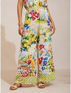 pantalon large en lin léger, style jardin d'agrumes, idéal pour les fêtes