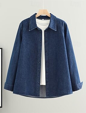 Femmes Chemise Boutons Denim Couleur Unie Quotidien Élégant Occasionnel manche longue Col de chemise Hauts Réguliers Quotidien Travail Sortir Olive verte Rose Claire Marron clair Bleu de minuit