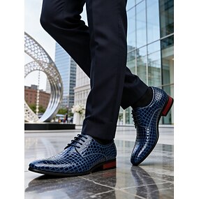 Chaussures pour homme en similicuir imprimé crocodile bleu - modèle élégant à lacets pour les occasions formelles et semi-formelles et les mariages