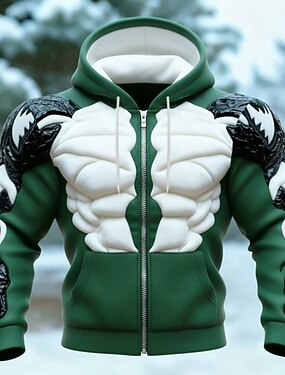 Homme Muscle Illusion d'optique Sweat à capuche Veste Sweatshirt Viking 3D Fantaisie Imprimé sur toute la surface manche longue Fermeture éclair Vêtements de rue Vacances Sortir Bleu Noir Rouge