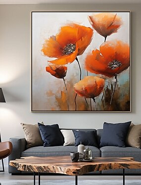 Tableau à l'huile rétro champêtre fait main sur toile florale, art mural pour salon, fleurs sauvages orange, images de plantes et de fleurs naturelles pour salle de bain, chambre, décoration murale