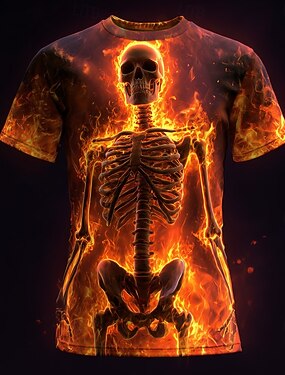 Homme Illusion d'optique Flammes de l'enfer 3D Squelette T-shirt Manche Courte T-shirt Impression 3D Col ras du cou Chemise Exagéré Designer Horreur Soirée Rue Fête Orange 3 Orange Orange 2 Ét