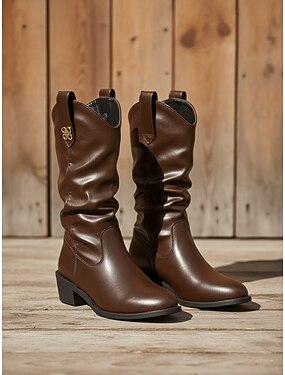 bottes western mi-mollet souples pour femmes avec talon bloc – bottes de cowboy marron d'inspiration vintage pour un usage décontracté et quotidien