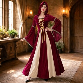 Médiéval Renaissance Longueur au sol Robe Manches longues Sorcière Princesse Reine Ligne A Déguisement Femmes Celtique Fantaisie Halloween Carnaval Foire de la Renaissance LARP Soirée à thème rétro