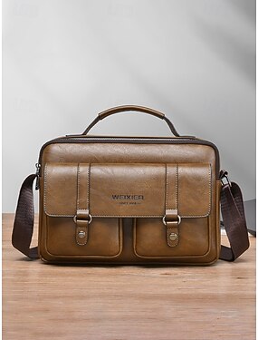 Homme Mallette Sac pour Ordinateur faux cuir Bureau du quotidien Fermeture Etagée Anti poussière Couleur unie Marron Sapin Noir Marron