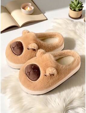 Chaussons en peluche pour femme en forme d'ours capybara – Chaussures d'intérieur chaudes en polaire avec un joli motif animal pour la maison, la chambre et les douces journées d'hiver