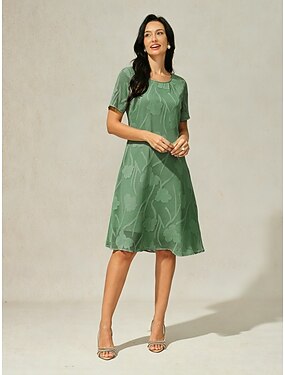 Femmes Mini Robe Robe fourreau Élégant Couleur Unie Manche Courte Col ras du cou Vert schiste