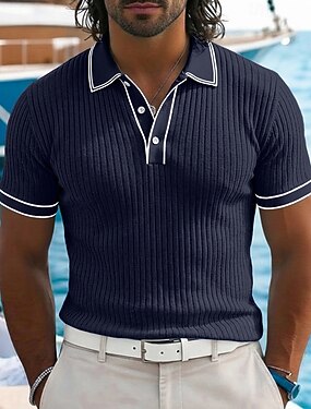 Homme Texturé Chemise de golf Occasionnel Fête Revers Col Polo Côtelé Manche Courte Basique Moderne Bloc de Couleur Patchwork Avec Poches Printemps & Été Été Coupe régulière Blanche Rouge Bordeaux