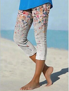 Leggings pour femmes Capri Pantalons Haute élasticité Mode de vacances Vintage Longueur mollet Taille haute Imprimé graphique floral Respirant Doux Extensible Formelle Vacances Bureau Blanc Vert Bleu