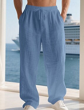 Homme Pantalons en Lin Pantalons Pantalon d'été Pantalons Amples Cordon de serrage Taille Élastique Jambe Droite Uni Confort Respirant Longueur complète Quotidien Fête Plage Vacances Mode Bleu Denim