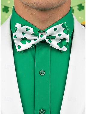 Nœud papillon pour homme en polyester, motif trèfle bicolore, parfait pour la Saint-Patrick et les festivités du carnaval.