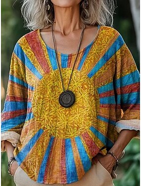 Femmes Chemise Chemisier Hauts à manches longues Fleuri Graphique Bohème Moderne Occasionnel manche longue Col ras du cou Hauts Réguliers Quotidien Fête Sortir Bleu Jaune Violet Kaki Gris Printemps