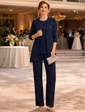 Ensemble pantalon robe mère de la mariée longueur de cheville manches ¾ col ras du cou élégante vintage formelle invité au mariage avec couleur unie