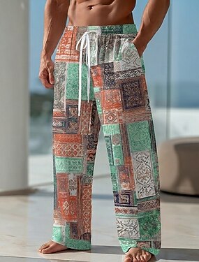 Homme Bohème Géométrique Patchwork Pantalons Pantalons Amples Taille Moyenne Ethnique Vintage Rétro Maison Extérieur Vacances Cordon de serrage Taille Élastique in in france they say Pontalon wide leg