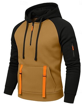 Homme Sweat à capuche Sweat à capuche quart zippé Sweat à capuche en polaire Sweat à capuche tactique Noir Kaki Gris foncé À capuche Uni Patchwork Fermeture éclair Bloc de Couleur Sport & Loisir