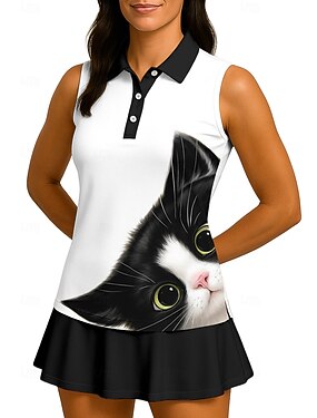 Femmes Unisexe Animal Chat T-shirt de sport T-shirt POLO Débardeur Chemise de tennis Sans manches Floral Boutons UPF50+ Résistant aux UV Haute élasticité Évacuation de l'Humidité Respirant