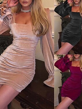 Femmes Mini Robe Robe noire Robe en Velours Robe fourreau Élégant Mode Moderne Quotidien Vacances Sortir Coupe régulière Uni manche longue Col carré Noir Rouge Printemps Automne Hiver
