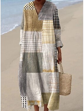 Femmes Robe maxi Robe fourreau Robe d'Été Vacances Occasionnel Plage Sortir Coupe Ample Graphique Géométrique Abstrait manche longue Col en V Jaune clair Rose Claire Marron clair Été Printemps