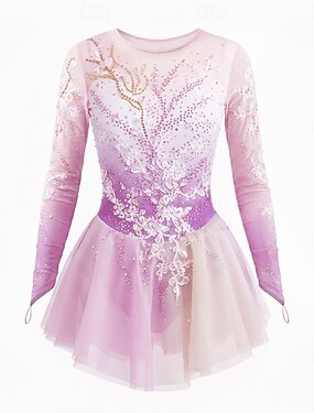 Robe de patinage artistique Femmes Patinage Robe Violet Patchwork Trou de pouce Élastique Entraînement Compétition Tenue de Patinage Classique cristal pailleté manche longue Patinage sur glace
