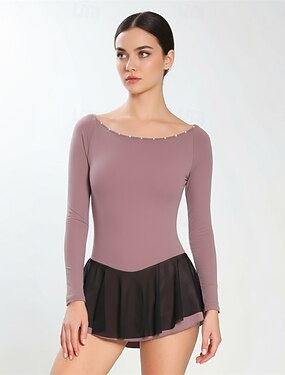 Robe de patinage artistique Femmes Patinage Robe Rose poussiéreuse Patchwork Spandex Élastique Entraînement Compétition Tenue de Patinage Chaleur Thermique Classique manche longue Patinage sur glace