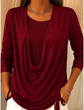 Blouse Femme Couleur Unie Stylée Décontractée Manches Longues Col en V Tops Réguliers Quotidien Sequins Patchwork Noir Rouge Bleu Royal Vert Printemps Automne Hiver
