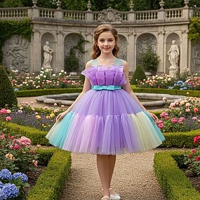 Robe de Demoiselle d'Honneur Fille Fille Robe de soirée Tenue de mariage Soirée Mariage Formel Princesse Patchwork Maille Dégradé Sans manches Col Rond Rose Claire Bleu Ciel 4 ans et +