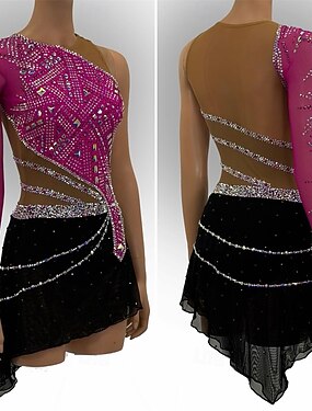 Robe de Patinage Artistique Femme Fille Patinage Jupes Tenue Noir Rose Rouge Spandex Haute élasticité Entraînement Compétition Tenue de Patinage Fait à la main Mosaïque Patinage sur glace Patinage
