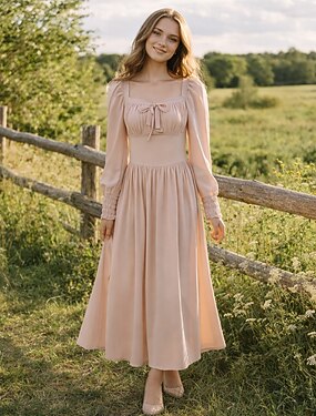 Rétro Vintage Médiéval Renaissance Midi Robe Manche cloche Viking Elfe Ligne A Déguisement Femmes Fantaisie Halloween Carnaval Vacances Décontracté Quotidien LARP Adultes Robe Printemps & Été