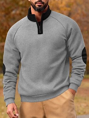 Homme Sweat-shirt Pull Sweat-shirt quart de fermeture éclair Abricot Marron Vert Gris Col montant Uni Patchwork Bloc de Couleur Sport & Loisir Occasionnel Quotidien Streetwear Frais Vêtements de sport