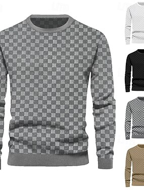 Homme Sweat-shirt Noir Blanche Vert Véronèse Kaki Gris foncé Col montant Uni Jacquard Patchwork A côtes Texturé Quotidien Fête Sortir Polyester Texturé Streetwear Occasionnel Automne Hiver Vêtement