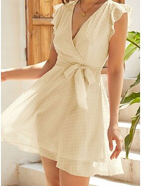 Femmes Mini Robe Robe Blanche Élégant Mode Moderne Extérieur Vacances Sortir Coupe régulière Uni Manche Courte Col en V Bleu Noir Blanche Rose Claire Été Printemps